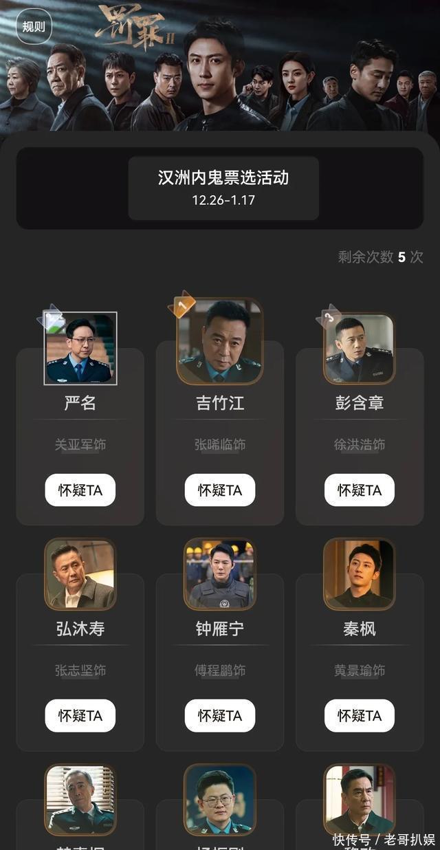 现在秦枫因为知道了内鬼身份,已经陷入了孤立无援的境地,身边全是需要防备的人,这种孤胆英雄的信任危机,看得人窒息。 而且剧组官方还搞了个“内鬼竞”的投票活动,明摆着暗示老吉只是冰山一角。